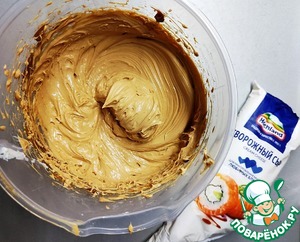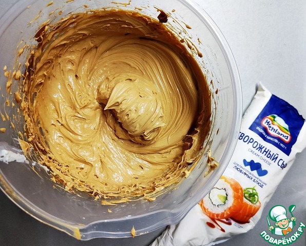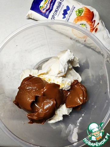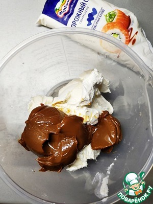 Для начинки смешать творожный сыр со сгущенным молоком.
