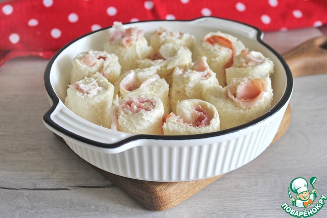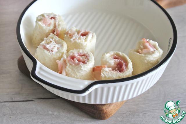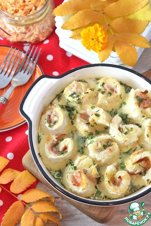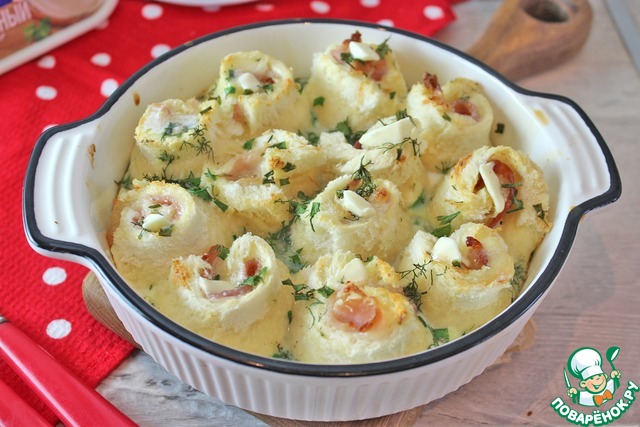 Это блюдо является отличным выбором для завтрака или легкого перекуса. Омлет с хлебными рулетиками, которые таят в себе нежный плавленый сливочный сыр и ароматный сырокопченый бекон, сочетает в себе простоту и вкус, нежны и аппетитны. Пропитанные омлетом, мягкие внизу и слегка зажаренные и хрустящие сверху хлебные рулетики, уверена, понравятся любому. Мне, например, очень.