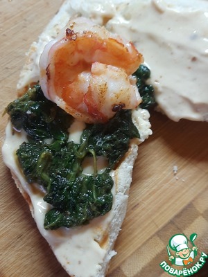 Я не часто ем сэндвичи... Для меня это достаточно плотная еда, но этим я не делилась ни с кем... Все как я люблю - креветки, острый соус на основе сливочного сыра ТМ Hochland и пасты том-ям, зелёный наполнитель - начинки много, она очень сочная... Заходите, угощайтесь!