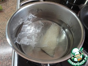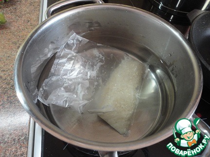 Рис в пакетике сварить по инструкции на упаковке. Соль, сахар и уксус смешать с рисовым уксусом, вылить в горячий рис и все тщательно перемешать. Остудить.