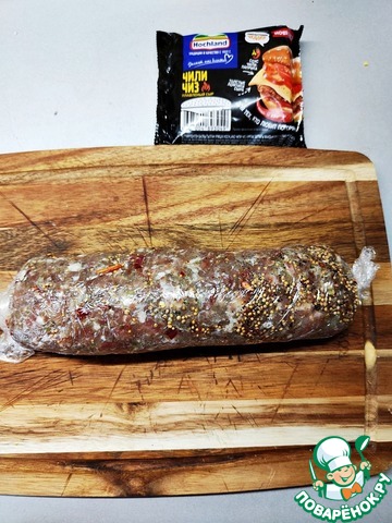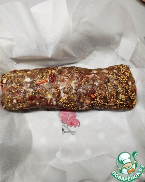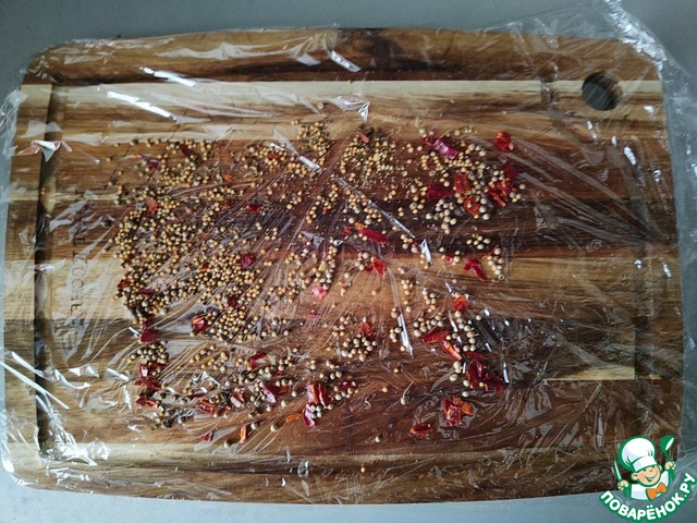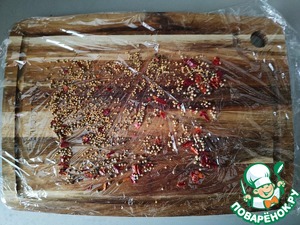 На доску выстелить пищевую пленку, рассыпать на ней специи.