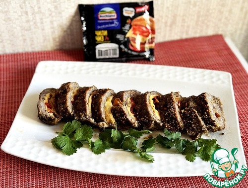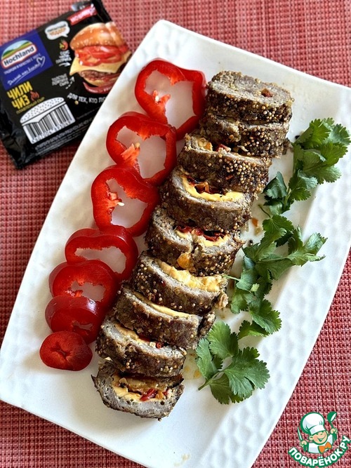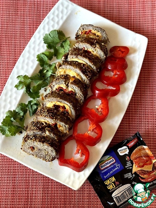 Вкусный и красивый рулет с начинкой из жареного перца и пластинок пикантного сыра Чили чиз ТМ Hochland с острым перцем станет украшением стола на званом обеде.