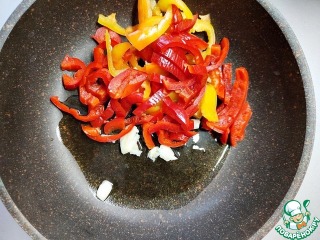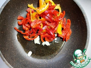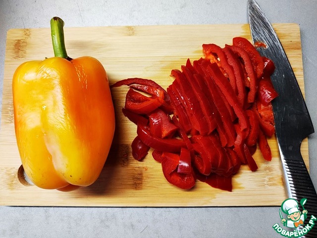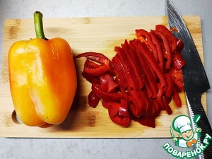 Перцы (желательно взять разных цветов) очистить, нарезать полосками