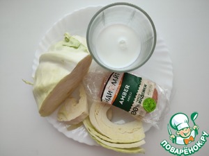Капусту, кефир, яйцо отправляем в кухонный комбайн (либо самая мелкая сетка мясорубки, блендер). |