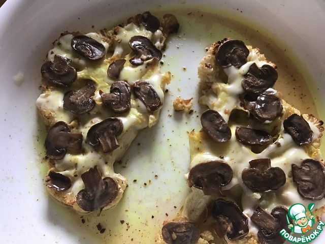 Сыр затек в соцветия и сверху - румяные шампиньоны.