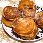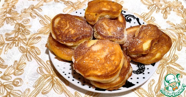 5. Часть оладьей посыпаю сахаром с корицей, часть смазываю медом и посыпаю миндальной стружкой, остальные посыпаю сахарной пудрой.