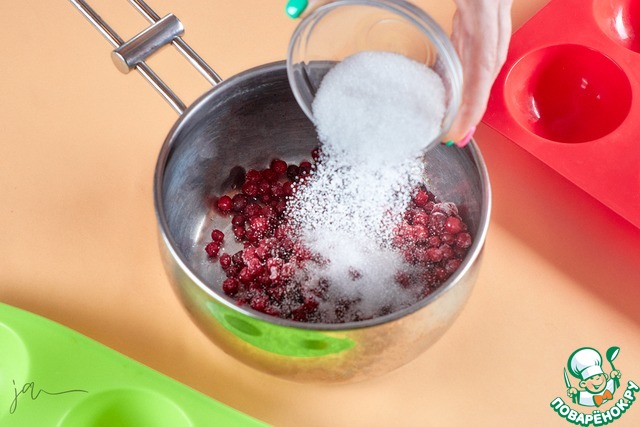 Первым делом приготовим начинку. Очень люблю кислые ягоды, поэтому мой выбор пал на бруснику. Но вы можете брать на свой вкус. Например, для следующего раза я выбрала черную смородину.