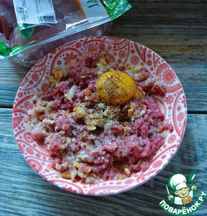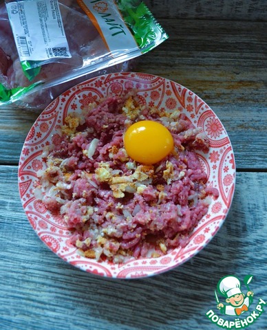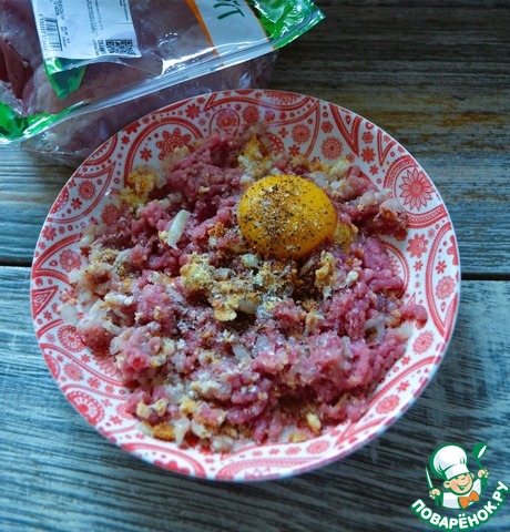 Филе индейки, лук и маленький кусочек чёрствого хлеба прокрутить на мясорубке (мелкая решётка). Добавить желток.