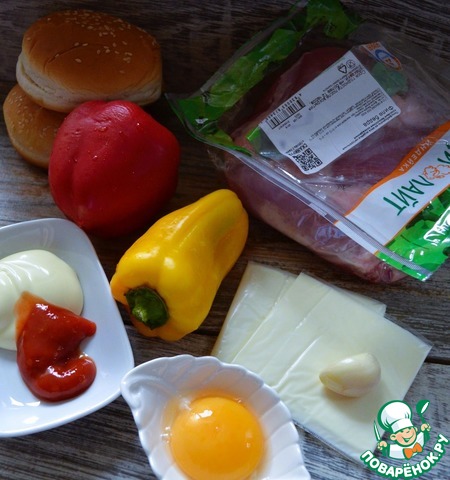 Ингредиенты для «Бургер с рубленой котлетой из индейки»:
