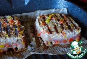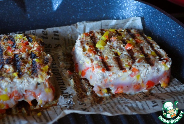Обжарить на гриль - сковороде до готовности, по 5-8 минут с каждой стороны, огонь чуть ниже среднего.