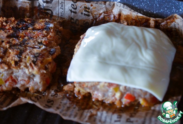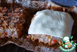 На готовые котлеты положить ломтики сыра, он слегка подплавится.