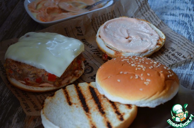 Рецепт «Бургер с рубленой котлетой из индейки»: