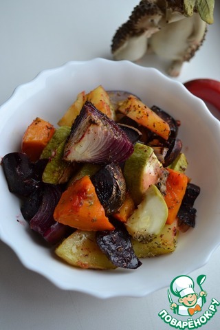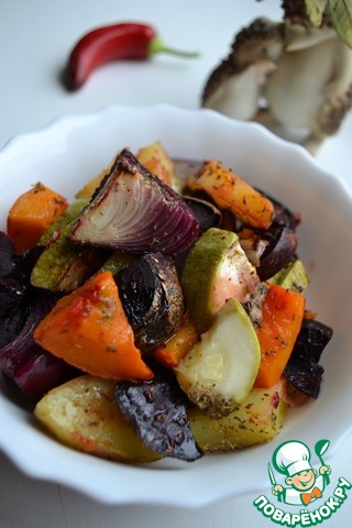 Запечь при 200° в течение часа. Ориентируйтесь на мощность своей духовки. Овощи необходимо запечь до мягкости и лёгкой корочки.