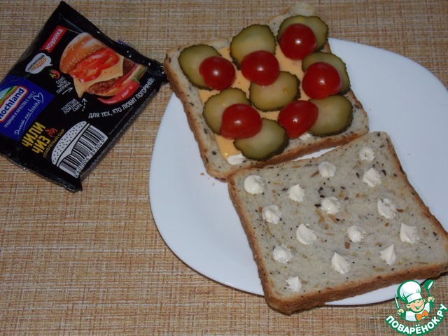 Рецепт «Сэндвич с сыром и помидорами черри»: