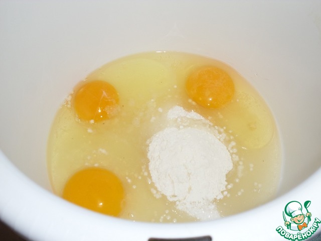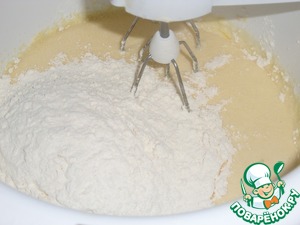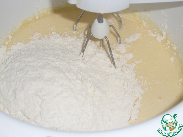 Просеиваем муку в чашу миксера. Соединяем массу до однородности.