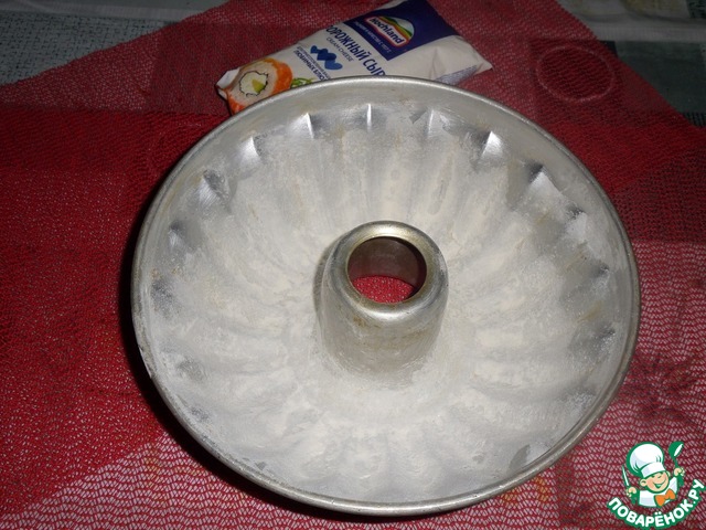 Форму для выпечки смазываем маслом и обсыпаем мукой.
