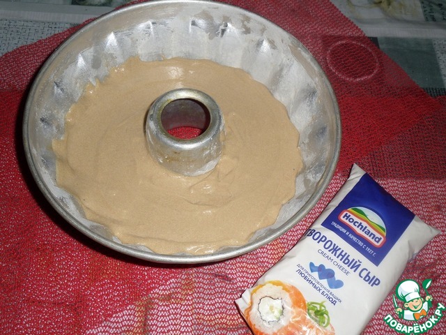 Выкладываем тесто в подготовленную форму для выпечки. Помещаем форму с тестом в разогретую духовку.