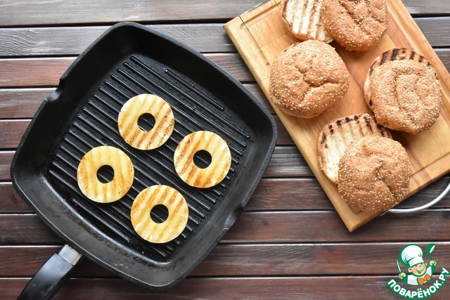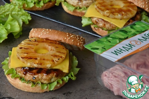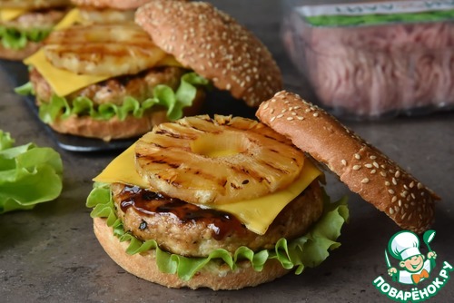 Рецепт «Бургеры с индейкой терияки и ананасами»: