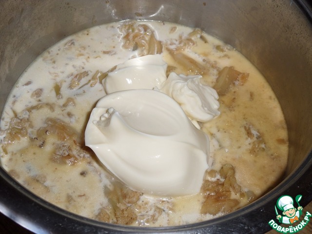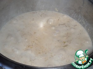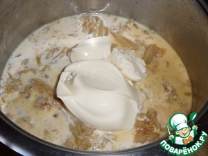 Через указанное время добавляем в кастрюлю плавленный сливочный сыр, сливки и соль.