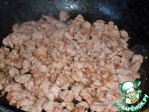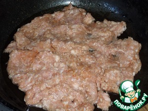 Обжариваем фарш 12-15минут, постоянно помешивая. Затем убираем сковороду с огня.