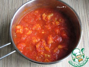 Влейте протертые томаты (у меня томат с чесноком) и воду, доведите до кипения.