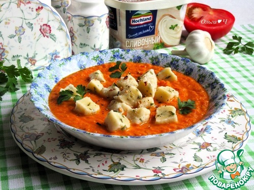 Рецепт «Томатный суп-пюре с творожными клецками»: