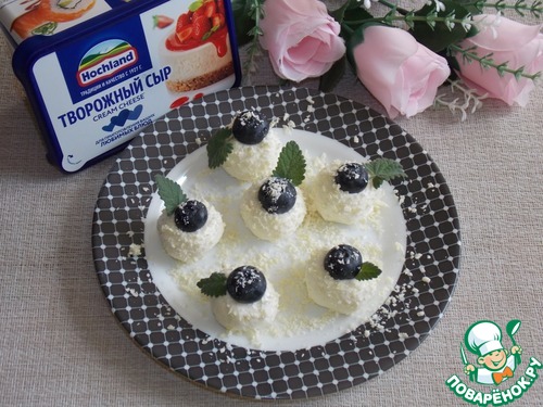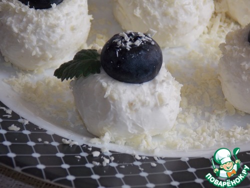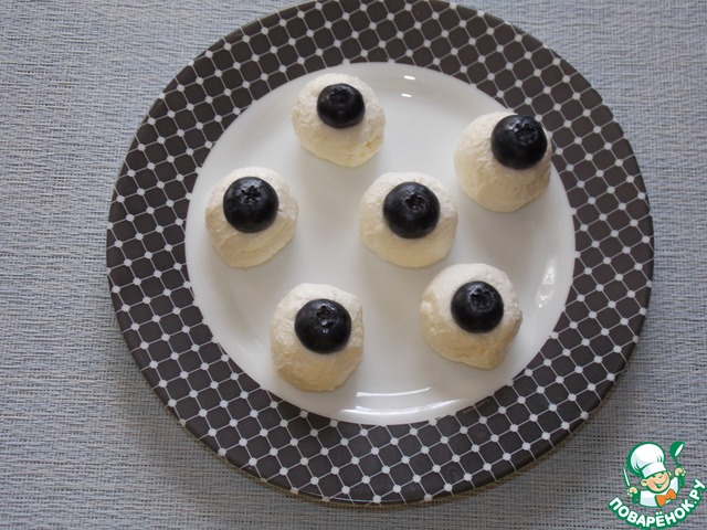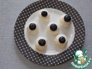 • На каждый шарик выложить по ягоде голубики, слегка ее вдавливая.