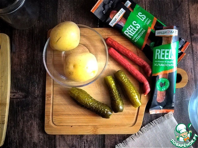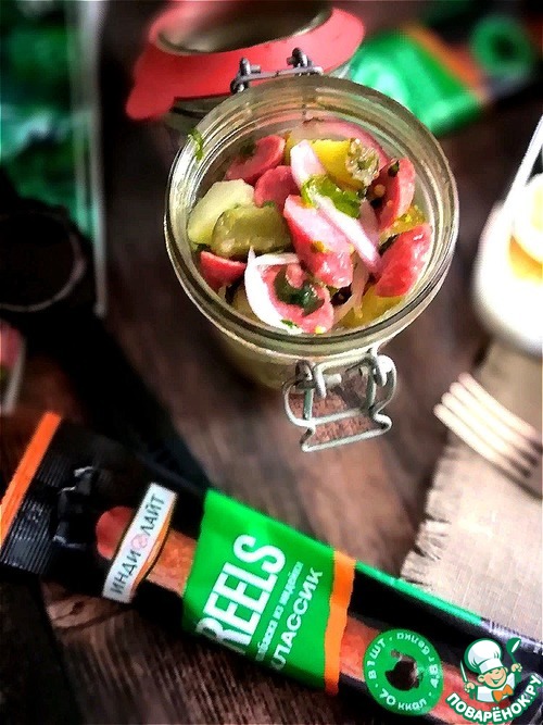 Картофельные салаты - классика немецкой, чешской и австрийской кухонь. Немецкий салат готовится по десяткам или даже сотням различных рецептов. Немцы говорят, что у каждой хозяйки свой картофельный салат. Сытное блюдо на основе картошки с добавлением лука, огурца, колбасы или шпика, бульона и даже яблок можно приготовить совершенно по-разному. Попробуйте мой вариант с колбасками из индейки ТМ ИНДИЛАЙТ, который мы возьмём с собой в качестве перекуса на работу или просто перекусим им дома.