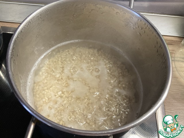 Вскипятить в небольшой кастрюле 250 мл воды, переложить туда перловку, уменьшить огонь до минимума, накрыть крышкой, варить 40 минут.