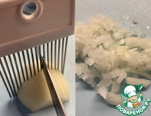 Лук мелко порезать. Я использую для этого удобное приспособление.