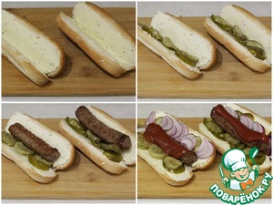 • Булочки для хот-догов разрезать вдоль, но не до конца.