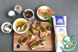 1. Подрумяньте ломтики булочек в тостере. Смажьте творожным сыром от Хохланд.