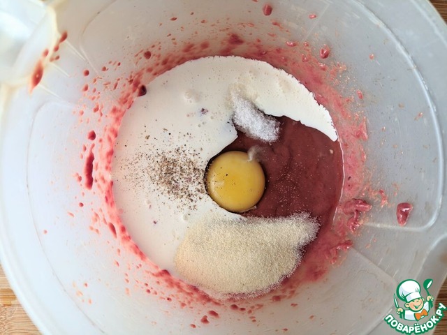 Добавляем к печени яйцо, сливки, манную крупу, соль, перец. Если вы на безглютеновой диете, то манную крупу можно не класть. А положить на 1 ст. л. больше рисовой поленты. Перемешиваем или пробиваем блендером.