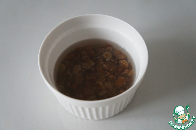Изюм заливаю горячей водой на несколько минут. Затем хорошо отжимаю.