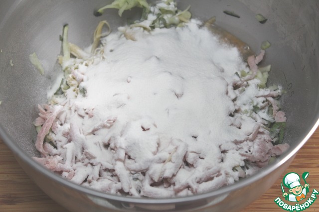 Отжать очень хорошо цуккини от жидкости и выложить в миску.