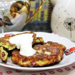 Отличный перекус - кабачковые оладьи, в которые для сытности и аромата добавлены сосиски Грандос ТМ Индилайт. Пробуем?