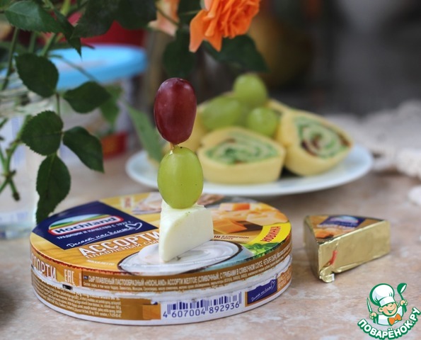 Готовый рулет подать гостям. Очень в тему будет добавить к званому обеду и плавленый сыр ТМ Hochland