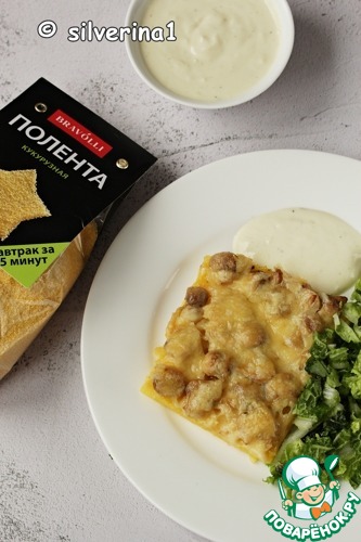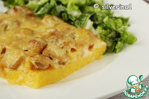 Вкусная и весьма сытная запеканка из поленты и грибов.