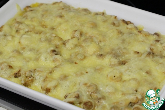Поставить форму в духовку, разогретую до 200 °С, и запекать около 20 минут или пока сыр не расплавится и не станет золотистым. -