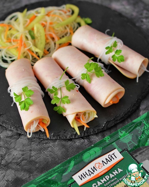 Ветчинные рулетики с салатом из фунчозы
