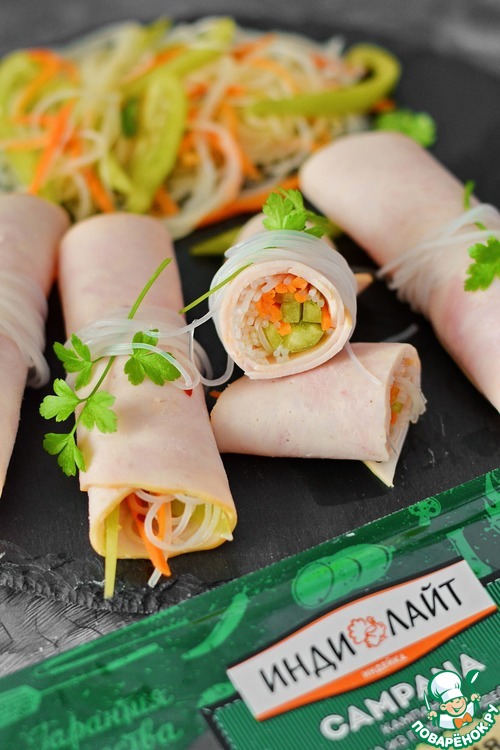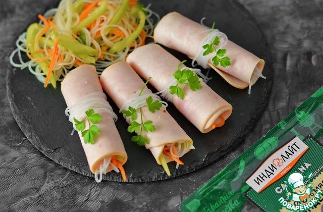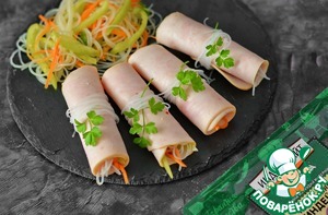 Рецепт «Ветчинные рулетики с салатом из фунчозы»: