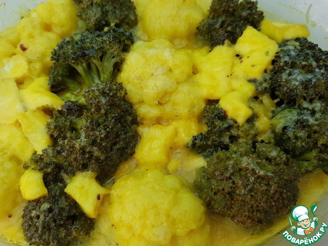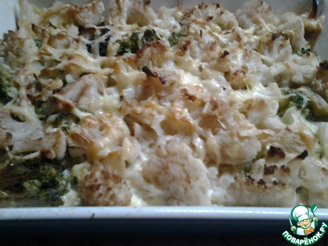 Брокколи и цветная капуста, запеченные в сырном соусе