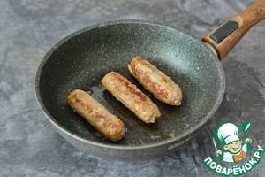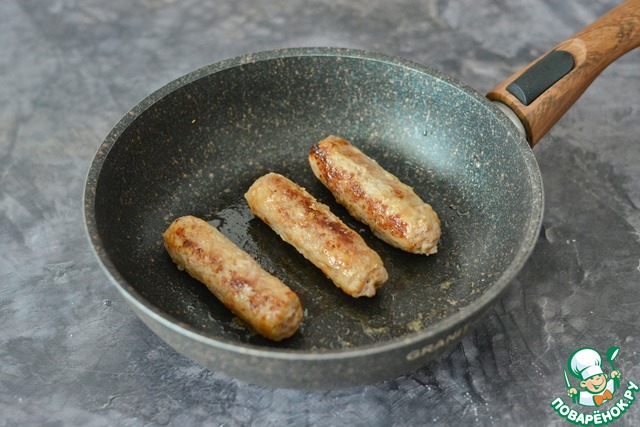 Купаты поджарьте на среднем огне на небольшом количестве масла, затем накройте сковороду крышкой и доведите их до готовности под крышкой.