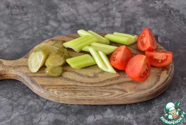 С овощами может быть полнейшая ваша фантазия. Вместо сельдерея возьмите свежий огурец или болгарский перец.