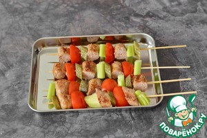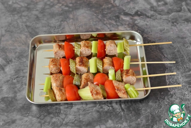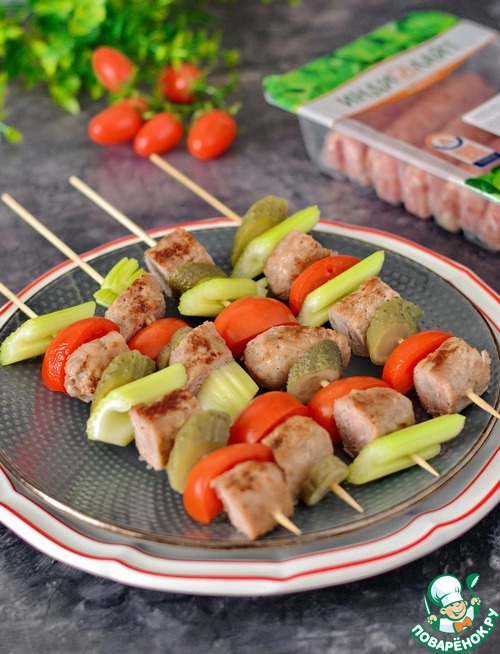 Рецепт «Брошеты из овощей с жареными купатами»: