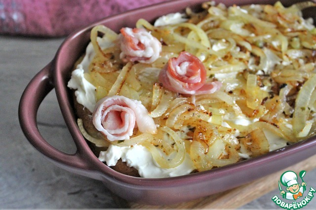 ! Я решила из бекона соорудить маленькие «розочки» для красоты.