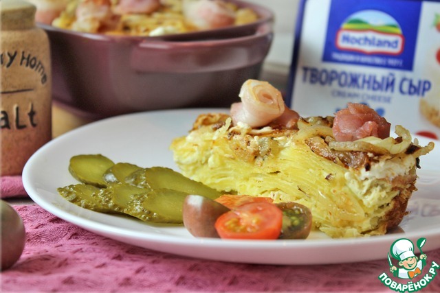 Если вы очень любите картофель, но картофельное пюре, жаренная и классическая запеченная картошка уже надоели, а хочется что-то совершенно нового и необычного по вкусу, тогда обязательно приготовьте картофельную запеканку в яично-сырной заливке. Рецепт простой в приготовлении, но изыскан по вкусу: нежность творожного сыра, воздушность яичного омлета, аромат сырокопченого бекона и питательность картофеля. А какая она аппетитная и красивая в разрезе! Сытный и вкусный ужин вам обеспечен.