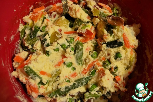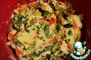Вмешать остывшие приготовленные овощи.