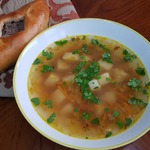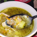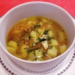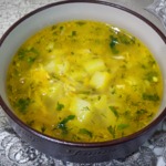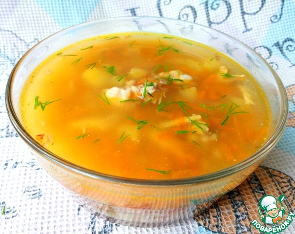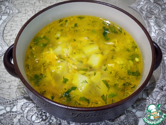 Основа любого супа - это хороший бульон. Если для щей он наваристый и крепкий, то для этого супа бульон легкий - хорошо подходит куриная спинка (1 шт) на 3-х литровую кастрюлю. Варится она 1 час.