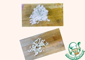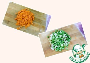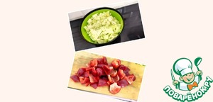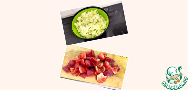 Капусту, сладкий перец нарезать небольшими кубиками.